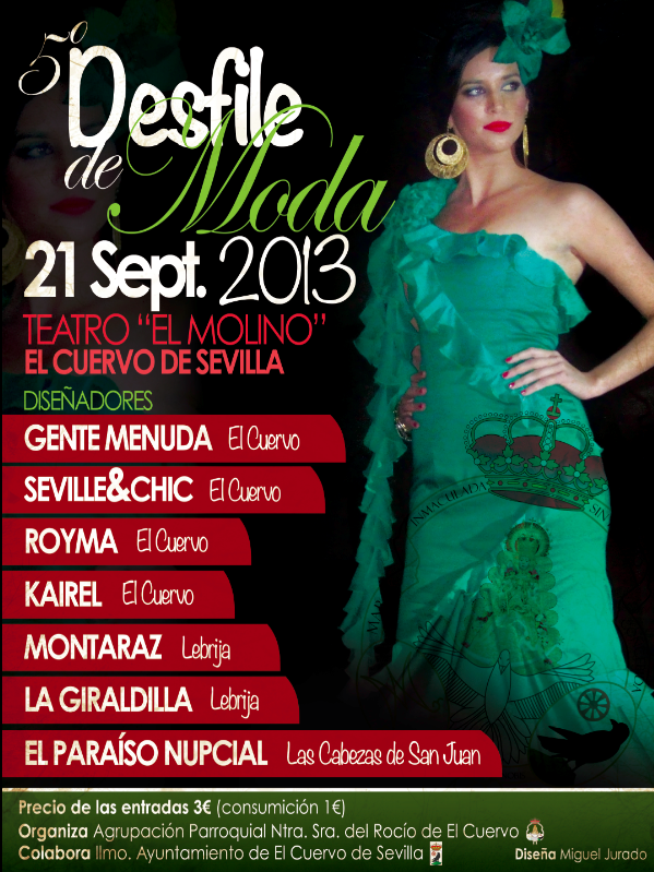 Por medio de la presente, les invitamos a que participen el próximo día 21 de septiembre en el V Desfile de Moda que organiza nuestra Agrupación en el Centro Cultural Casa de Postas. Este año como novedad la entrada al evento es de 3€ con una consumicion de 1 € incluida en el precio.
