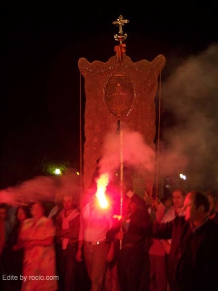 A las 12 de la noche, Santo Rosario, cantado por el itinerario tradicional, cantandose la tradicional » SALVE ROCIERA «, a la finalización del mismo.