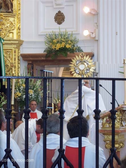 Terminada la Solemne Misa, » Procesión Eucarística «, por el itinerario tradicional, a continuación, tendrá lugar el Acto de Juramento e Imposición de Medallas a los nuevos hermanos.