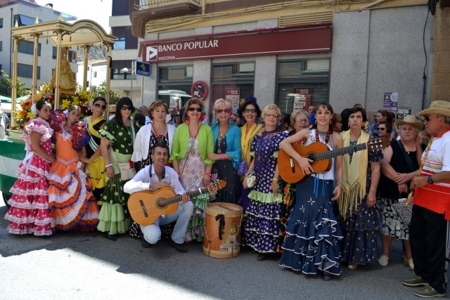 Los romeros que salieron de la iglesia escoltando a la imagen de la Virgen del Rocío realizaron dos paradas antes de llegar al término de La Barca donde tuvo lugar una comida de hermandad para unas doscientas personas y una sobremesa con cánticos y sevillanas que se prolongó hasta bien entrada la tarde.