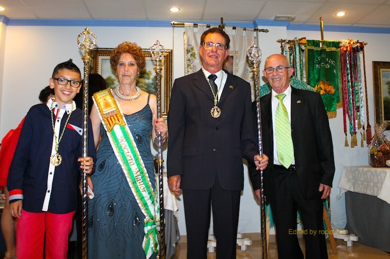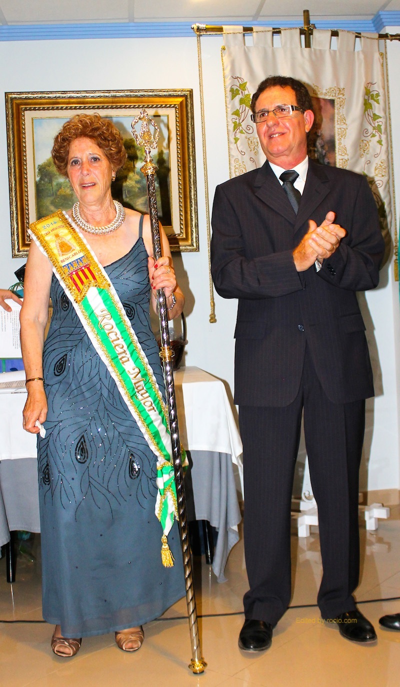 Para finalizar, la Presidenta de la “Hermandad de Camareras de la Virgen”, Lourdes Ortells, colocó la Banda y entregó su báculo a la Rociera Mayor 2014, Remedios Mendoza Carranza, toda una vida dedicada a la Casa de Andalucía y a la Virgen del Rocío, quien no pudo contener la emoción del momento.