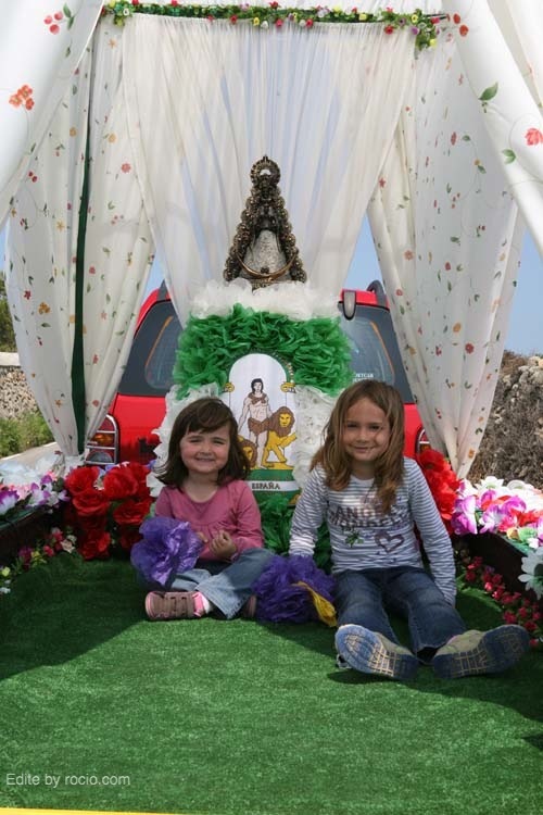 60 romeros y ocho carretas custodiaron a la Virgen del Rocío por el Camí d,en Kane de Maó a Es Mercadal.