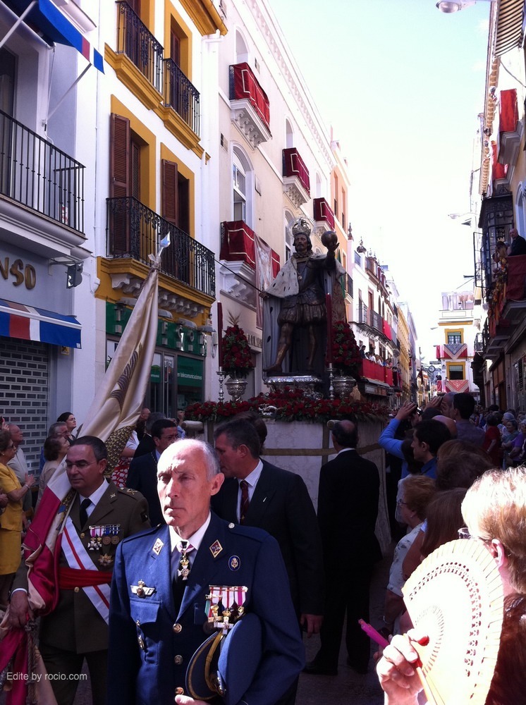 -Excmo. Sr. Gobernador Militar portando el pendón de San Fernando