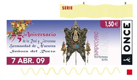 De esta forma, la ONCE contribuye así a la proyección nacional de la Hermandad del Rocío de Dos Hermanas, ya que la imagen de su simpecado figura en los cinco millones de cupones que ya se han puesto a la venta a través de su red de ventas integrada por 22.000 vendedores en toda España.