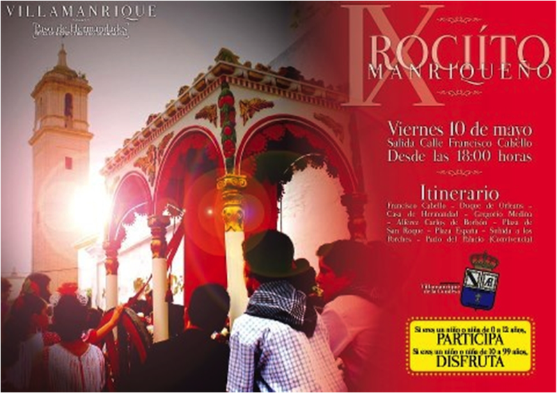 El próximo viernes, día 1O de mayo de 2013 a las 18 horas, se celebrará por las calles y plazas de Villamanrique de la Condesa "El Rociíto" o Rocío de los Niños. Esta es otra tradición centenaria que se celebra cada año en Villamanrique en los días previos al Rocío. Y es como la Romería de la Hermandad en pequeño con su Carreta del Simpecado, el Presidente de la Hermandad, el Hermano Mayor, el tamborilero, cohetero, carreteros y gran cantidad de peregrinos andando. Actualmente lo organiza la Ludoteca municipal con la colaboración del Excelentísimo Ayuntamiento de la villa. El singular cortejo, después de recorrer las calles y plazas del pueblo, se presentará en los porches de la iglesia parroquial de Santa María Magdalena como harán días después todas las Hermandades que se dirijan hacia el Rocío. Allí en la parroquia recibirán al cortejo infantil en los famosos siete escalones de los porches manriqueños el Párroco, el Alcalde y Corporación Municipal y el Presidente y Junta de Gobierno de la Primera y Más Antigua Hermandad del Rocío. El Rociíto de Villamanrique de la Condesa es un acto entrañable, que los más pequeños viven con gran ilusión y se sienten partícipes rocieros de su Primera y Más Antigua Hermandad del Rocío,