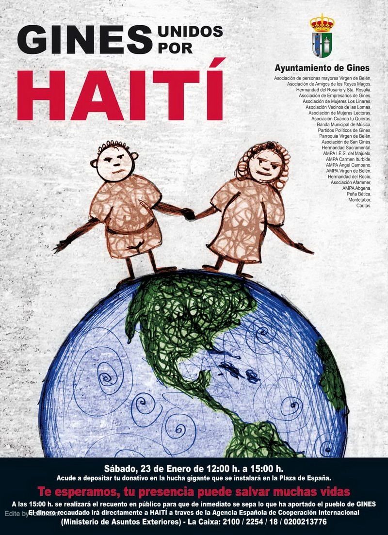 Bajo el lema “Gines unido por Haití”, y a pesar de la insistente lluvia, numerosos voluntarios divididos en grupos comenzaron a recorrer las diferentes zonas de la localidad pidiendo la colaboración económica de los vecinos, en lo que ha constituido una movilización solidaria sin precedentes en la historia de la localidad.