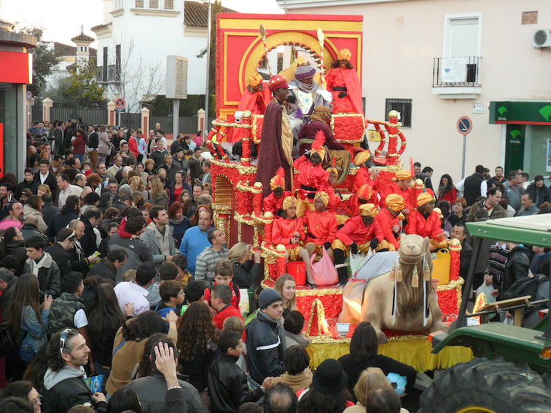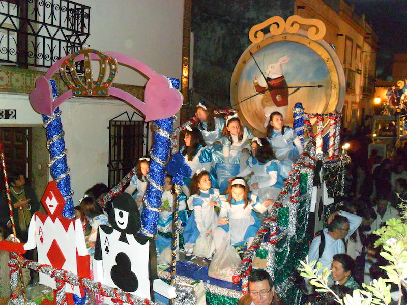 Y cumpliendo con la tradición, desde las 17.00 h. un total de 10 espectaculares carrozas totalmente artesanas tomaron las calles del municipio. Llenándolas de vida iban la Estrella de la Ilusión (Mercedes López), encargada de abrir el Cortejo Real y guiar a sus Majestades Melchor (José Antonio Esquinas), Gaspar (Isidoro Camino) y Baltasar (José Olivares), y más de un centenar y medio de niños y niñas que contagiaron a los presentes de su alegría en este día mágico. No faltaron más de medio centenar de beduinos dando colorido y animando el desfile.