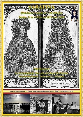Es este mes de febrero recuperamos nuestra tradición de celebrar nuestras misa y cena rocieras en segundo martes del mes. Así es que tomad nota de la fecha (13 de febrero, víspera de San Valentín), la hora (a partir de las 19h00) y del lugar (rue du Cornet 51, 1040 Bruselas) y venid a acompañarnos en estas celebraciones.