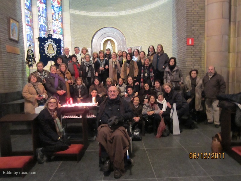 La tarde empezó a las 16h con una visita a nuestro queridísimo Simpecado en la Basílica de Koekelberg, en donde después de las presentaciones oportunas de los allí presentes (ambas Juntas de Gobierno y otros miembros de ambas Hdes, además de contar con la presencia de Antonio, unos de los fundadores de la Hdad de Barcelona), la Hdad. de Barcelona hizo una ofrenda floral al Simpecado de Bruselas y el nutrido grupo de asistentes cantó la Salve y unas sevillanas que resonaron como nunca. Después de un emocionado “Viva la Virgen del Rocío, Viva la Hermandad de Almonte, Viva las Hermandades de Bruselas y Barcelona”, y tras una breve visita a la majestuosa Basílica, todo el grupo se encaminó a la Sede de la Hdad de Bruselas, donde todo estaba ya preparado para pasar una velada todos juntos. La sala preparada, la comida calentita, la bebida fría…. Y todos los asistentes con muchas ganas de hacer nuevas amistades y pasar una tarde inolvidable. Y así fue! Las dos Hdes. compartieron bailes y cantos, risas y se pudo comprobar que nuestra devoción a la Blanca Paloma no tiene fronteras de ningún tipo.