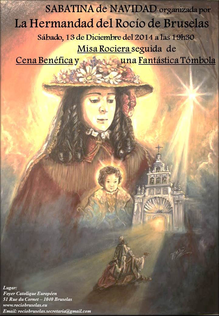 Las Fiestas Navideñas se acercan y un año más, La Hermandad de Ntra. Sra. del Rocío de Bruselas, desea celebrarlas con su gran familia rociera. Así pues, ya está preparando la siguiente Misa Rociera y Cena Benéfica que tendrá lugar el Sábado, 13 de diciembre a las 19h30, como siempre en su sede del Hogar Católico Europeo (51, rue du Cornet, 1040 Bruselas).