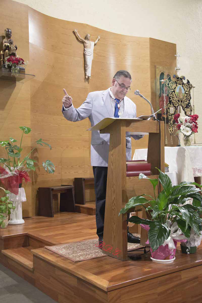 Después de la presentación de rigor subió al atril nuestro AMIGO Hispano. Hay que decir que aunque se esperaba un pregón sincero, lo seguro era lo preparado que lo traía. Su dimensión por gran tamaño que tenia, se quedaba pequeño junto al corazón de nuestro pregonero.