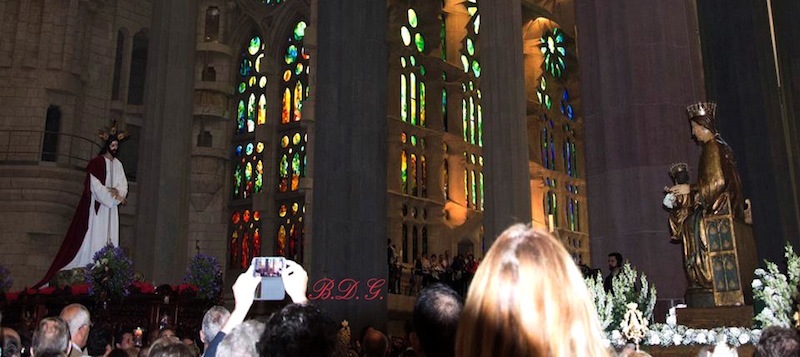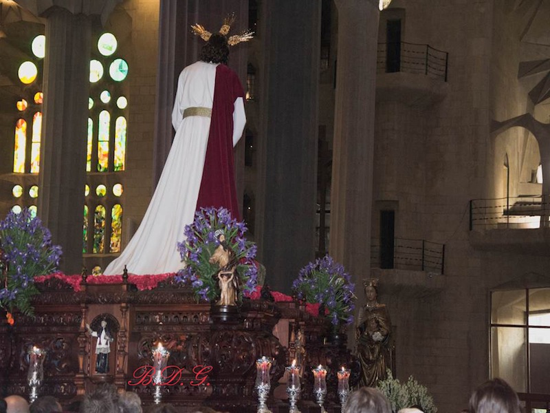 El pasado Domingo 20 de octubre a las 17 h se inicio una tarde diferente en el Eixample barcelonés. la sensación de hormigueo y satisfacción se reflejaba en las caras de gentes de Cofradía y Hermandad. Esas caras eran observadas por los centenares de turistas que normalmente acuden a la majestuosa Basílica de La Sagrada Familia.