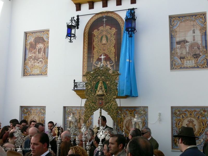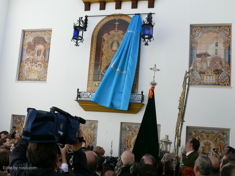 En la tarde del pasado lunes 1 de marzo coincidiendo con la peregrinacion extraordinaria que realiza la Hermandad de Ntra. Sra. del Rocio de Huelva a la aldea Almonteña se inauguro y bendijo en el patio de la Casa de Hermandad