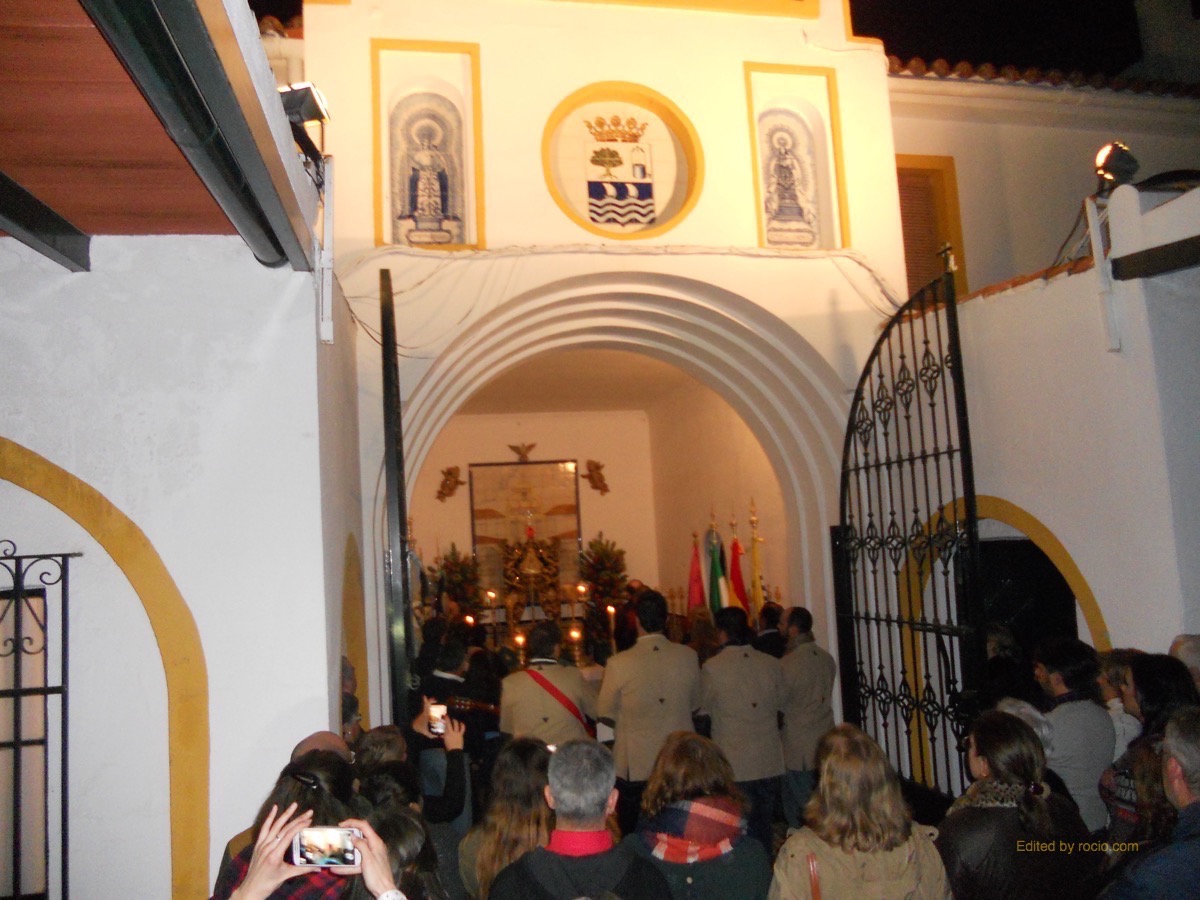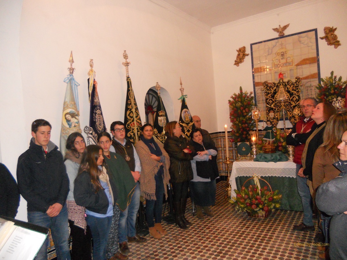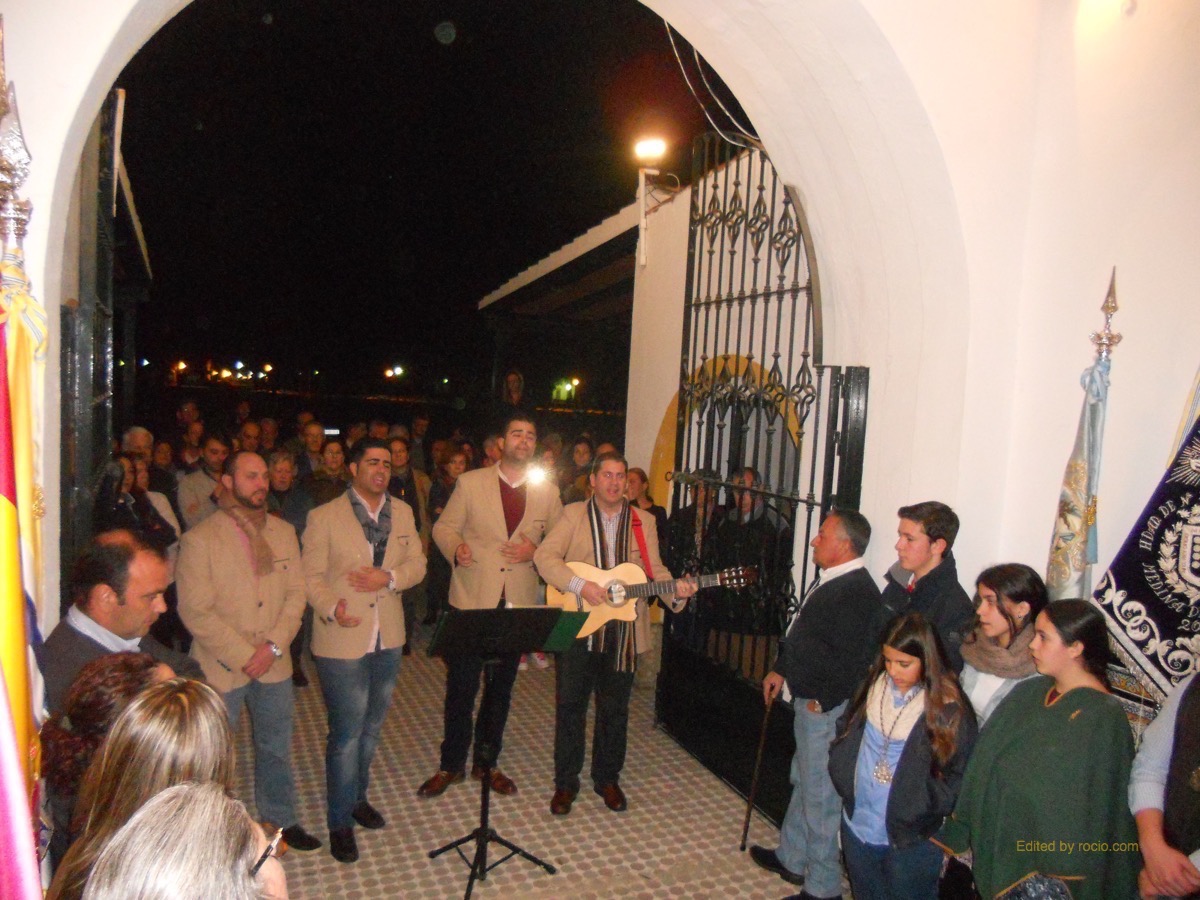 Con motivo de la Peregrinación Oficial de la Hermandad de Isla Cristina al Rocío el domingo día 24 de Enero, fueron muchos los hermanos y hermanas que se acercaron hasta la Aldea la noche del viernes día 22 para, a las doce de la noche, cantar la Salve al Simpecado que ya estaba colocado en su Capilla con todos los enseres magistralmente puestos, como siempre, por las camaristas y con la ayuda, siempre desinteresada, de Francisco Ginés Vélez. Y así, en ese rincón tan hermoso, la Junta de Gobierno de la Hermandad, acompañada por miembros del Grupo Joven y por el Párroco de la Hermandad de Medina del Campo, presentó al Grupo «Aromas de la Rocina» de La Palma del Condado que, un año más, quiso estar presente y deleitarnos con la Salve de la Hermandad de cuya letra y música es autor José Antonio Monclova, y, después, con un grupo de sevillanas dedicadas al sentir rociero de los isleños y una plegaria.