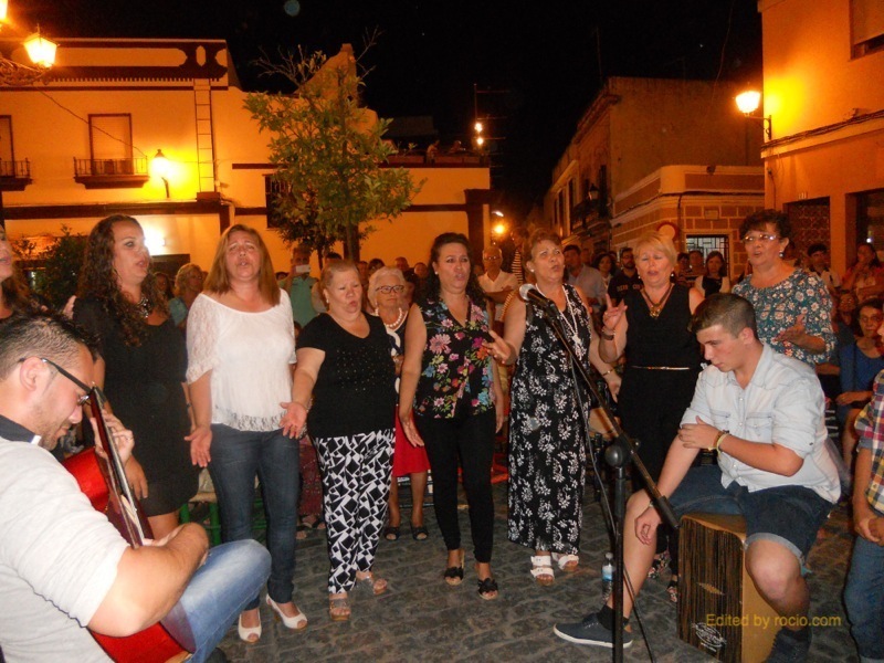 Con una hermosa Plegaria, Ana del Carmen Rodríguez trajo hasta las puertas de la Casa Hermandad del Rocío, el pasado viernes día 5 de Septiembre, a su Coro "Sabor Andaluz". Una Plegaria que continuamente alaba a la Madre de Dios y a su Santísimo Hijo. Y, cómo no, "Sabor Andaluz" llenó cada rincón de la plazoleta San Francisco de los sentimientos, quejíos y amores que tienen los buenos rocieros con cada sevillana y fandango que interpretaron, con esos sentimientos a flor de piel que tenía el grupo y que contagiaron a todos los que las escuchaban. Sin duda alguna, un verdadero honor para la Hermandad contar con Ana y su hijo Joselito González a la guitarra y con su grupo "Sabor Andaluz", derrochando todos y todas ese cariño tan especial que le tienen a la Virgen del Rocío.