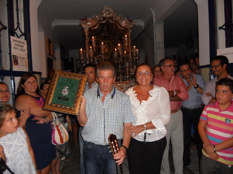 La Alcaldesa de Isla Cristina, Dª María Luísa Faneca, que nos acompañaba esa noche, fue la encargada de entregar a Juan Ramos un recuerdo de la Hermandad. Pero después de interpretar unas sevillanas, fueron muchas las voces que pidieron que no acabaran sin cantar la hermosa Plegaria que le dedican a la Virgen del Mar. Lo lograron, si; la ovación fuera apoteósica.