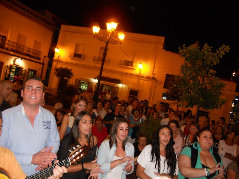 Una vez más, al toque de la campana, la Casa Hermandad de Nuestra Señora del Rocío de Isla Cristina, apagó las luces para que a las doce de la noche comenzara el canto de la Salve al Simpecado, y aunque estaba anunciado de antemano que correría a cargo de Juan Asuaga, por problemas ajenos a la Hermandad no fue así. De manera que, aunque no estaba avisado, la Salve la interpretó el CORO DE LA HERMANDAD DE LA VIRGEN DEL MAR de La Punta del Caimán, dirigidos por Juan Ramos Martín, "El Cano de la Punta", levantando una ovación mayúscula en toda la Plaza de San Francisco por el encanto de voces que tiene ese Coro y, sobre todo, por el entusiasmo y devoción que manifiestan cuando interpretan.