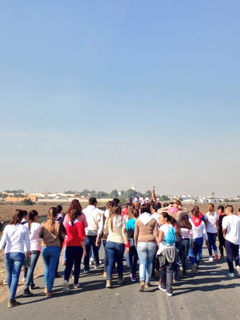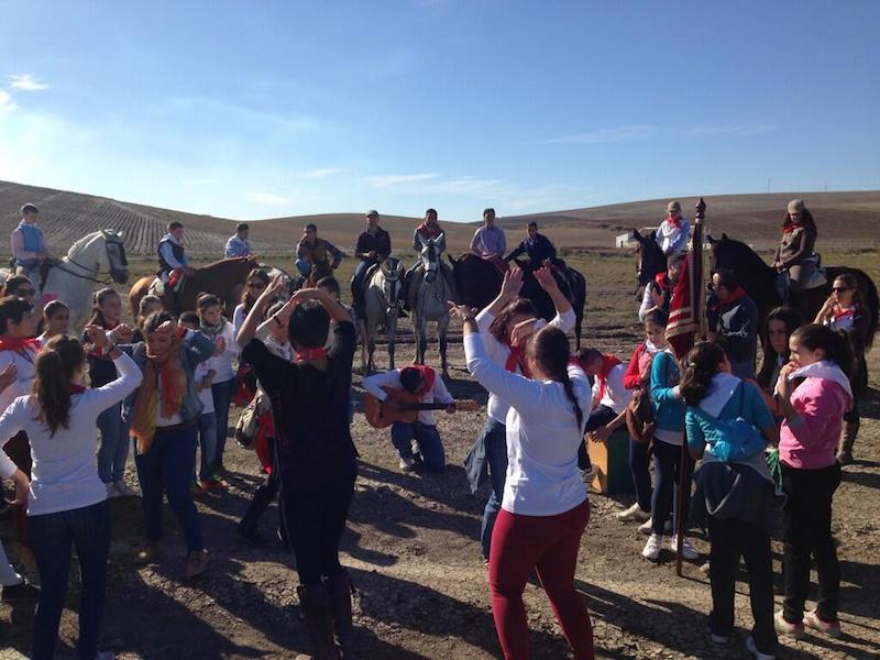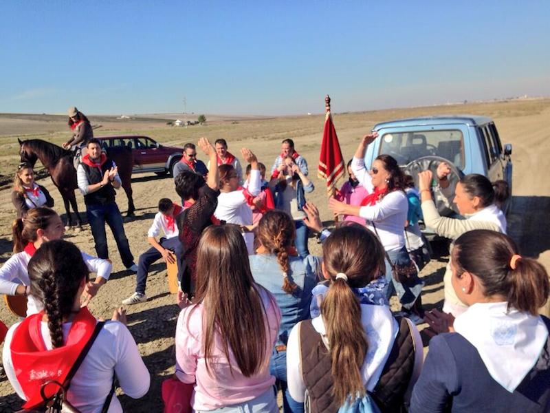 Caras de ilusion, alegria y cantes dieron comienzo al camino por las calles del pueblo hasta emprender los caminos marismeños del término de Las Cabezas. Varias paradas para reponer fuerzas donde no faltó el baile y el cante hasta que pasadas las 14,30h del mediodia se llegaba a la localidad de Marismillas donde tras el recibimiento de la Hdad de Ntra Sra de La Marisma y el cura Párroco de la localidad se rezó la salve a su imagen titular y se dió paso a una bonita convivencia en la Casa-Hdad de dicha Hdad que acogió a los peregrinos con mucho cariño e ilusión. Tras degustar una buena paella y merendar un chocolate con pasteles, llegó el fin de fiesta con alegria, cantes y vivas a las Virgenes Gloriosas de ambas Hermandades Marianas que quedaron Hermandas para siempre.