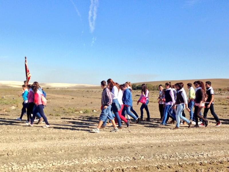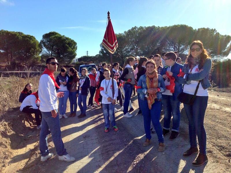 Los jóvenes Rocieros quedaban concentrados a las 9 de la mañana en la esplanada de San Roque, donde tras el rezo de la Salve al Bendito Simpecado iniciaba el peregrinar por las marismas camino de Marismillas.