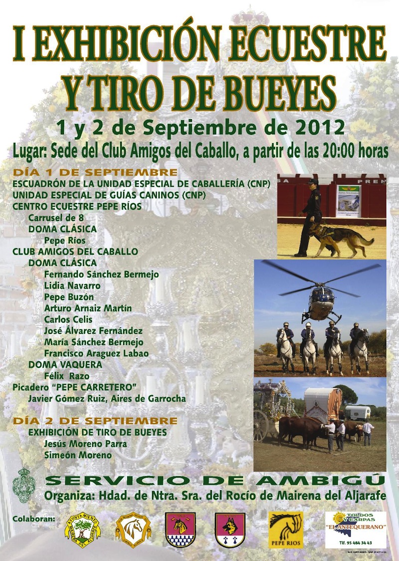 Día 1, sábado, a las 20:00 horas Exibición Ecuestre, en la sede del Club Amigos del Caballo (Camino del Río Pudio).