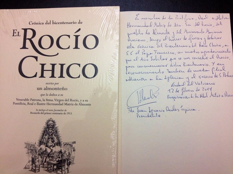 Desde Barcelona expreso mis sentimientos y es un verdadero orgullo para mi mostrarme tan agradecido del PAPA FRANCISCO dando sus bendiciones a ustedes como HERMANDAD MATRIZ y OBISPO DE HUELVA porque a si me lo habeis transmitido a mi y a todos los ROCIEROS del mundo.