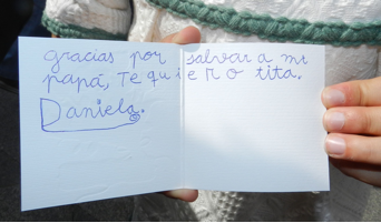 Fue muy emotivo el momento en el que Rocío Gordillo recibió un ramo de rosas rojas de una niña, su sobrina Daniela, hija del hermano que recibió su riñón, con una dedicatoria: “Gracias por salvar a mi papá. Te quiero tita”.