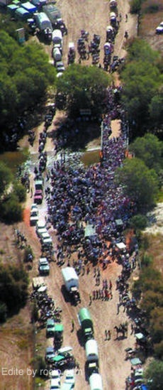 La hermandad del Rocío de Jerez presentó ayer el cartel anunciador de la romería de este año, acto que tuvo lugar en la casa de hermandad. Su autor es Tato Cirera con una fotografía que resultó ganadora de un concurso convocado por la hermandad. La imagen recoge una clásica estampa de la caravana de Jerez por entre los pinos de Doñana.