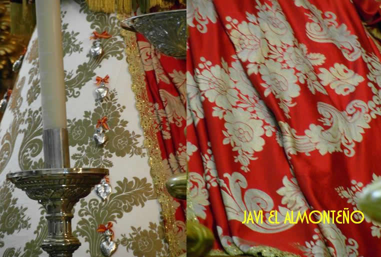 Confeccionado en seda roja, brocado con hilo de metal en oro, basado en los brocados antiguos y medido en el ancho del s. XIX