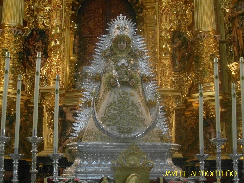 La Virgen no saldrá de pastora, saldrá como sale en la foto,de Reina, porque ya esta en su andas. Y saldrá por la madrugada del lunes, el día 19 de agosto.
