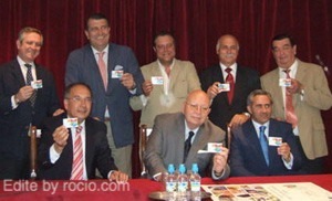 Los 5 Hermanos Mayores de las Hermandades de Triana, Sevilla, Cerro, Sevilla Sur y Macarena se fotografiaron, junto al Presidente del Consejo de Cofradías, mostrando sus Tarjetas de Donantes para ejemplo de sus hermanos.