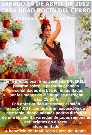La Hermandad de Ntra. Sra. del Rocío de Sevilla-Cerro del Águila ha organizado para el próximo sábado 14 de abril un pase de moda flamenca en las depedencias de la casa hermandad, ubicada en la calle Nuestra Sra. de los Dolores, que dará comienzo a las 21.30 horas.