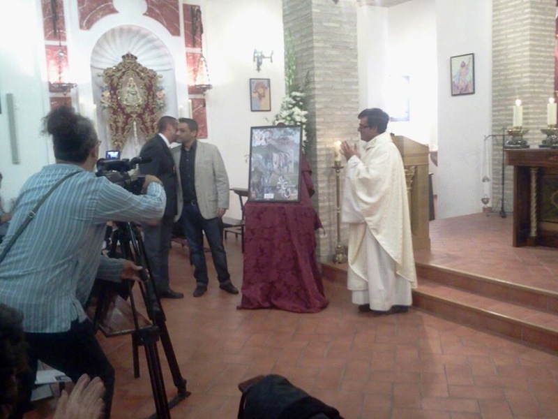 El Sábado 27 de Abril tras la Misa Sabatina de la Hermandad Rociera de Las Cabezas celebrada en San Roque donde ademas se les impuso las medallas a los nuevos Hermanos y Hermanas de la Hdad, se descubrió el Cartel Oficial de la Romeria 2013, su autor ha sido Ruben Gil Quiñones y junto a el, lo descubrieron el Hno Mayor Pedro Moreno Toajas y el Director Espiritual Eloy Ganfornina.