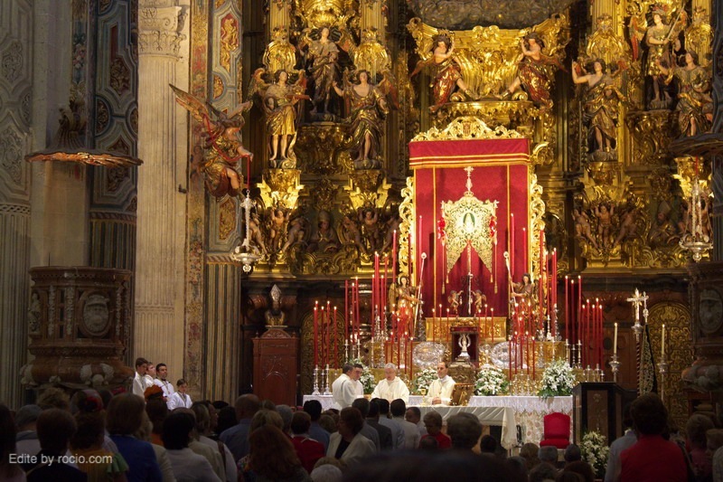 Hoy jueves 9 de junio a las 08,00 horas, el obispo auxiliar de Sevilla, Santiago Gómez Sierra, ha oficiado la Misa de Romeros de la Hermandad de ntra. Sra. del Rocío de Sevilla en su sede del Divino Salvador siendo cantada por el Coro de la Hermandad. A su conclusión, sobre las 09,00 horas, comenzó el camino hacia la Blanca Paloma.