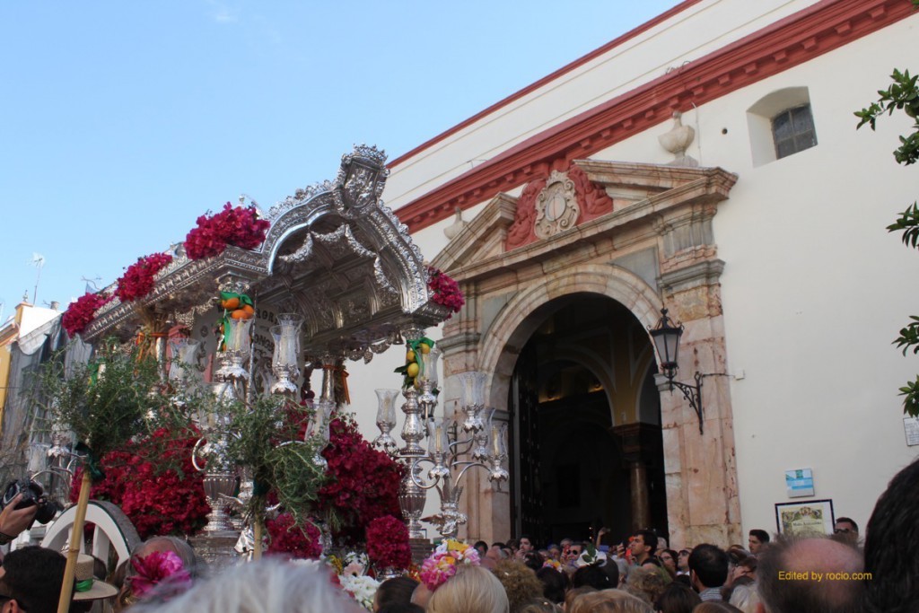 Salida de la Hermandad de Triana 2015. La Hermandad de Triana después de celebrar su Misa de Romeros en su Capilla de la calle Evangelista a las 7,30 de la mañana ha iniciado su camino hacia la aldea almonteña.
