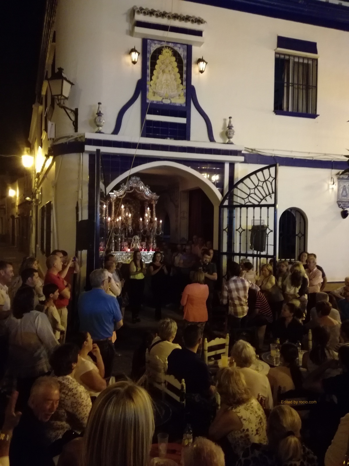 El pasado viernes, último día del mes de Junio, la Hermandad del Rocío de Isla Cristina comenzaba, un año más, la temporada del canto de la Salve al Bendito Simpecado. Así, desde las 22’30 horas en que abrieron las puertas de la Casa Hermandad, un gran número de hermanos y público en general, fueron acercándose para poder presenciar ese momento. ¡Y llegó! Como siempre, al toque de campana, a las doce de la noche comenzaron a sonar los acordes de la guitarra de José Antonio Monclova Rodríguez que acompañado por Samanta Vázquez Redondo y Juanpe cantaron la Salve de la Hermandad, no pudiendo aguantar los rocieros que allí se encontraban sin acompañarles en esa oración cantada tan hermosa.