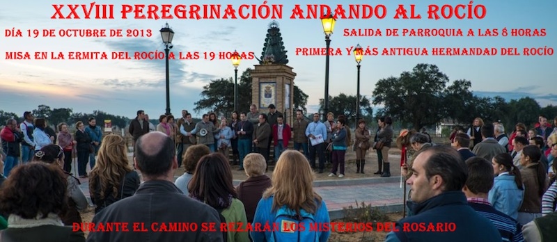 Como cada mes de de octubre, el mes del Rosario, y desde hace veintiocho años, la Primera y Más Antigua Hermandad del Rocío de Villamanrique de la Condesa organiza una peregrinación andando y rezando el Santo Rosario a la aldea del Rocío para conmemorar el Primer Centenario de la Fundación del Santo Rosario del Rocío por el Hermano Mayor de la Hermandad, Francisco Bedoya Béjar, en el año 1887.