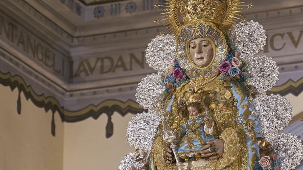 La Virgen del Rocío luce el celeste de la Inmaculada Concepción.