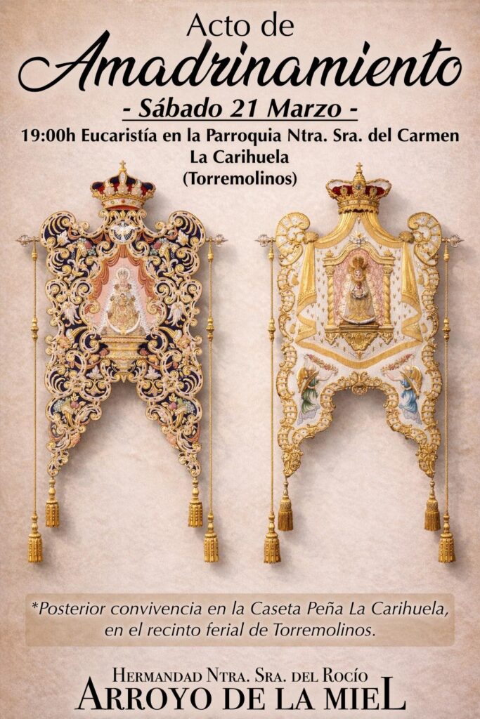 La Hermandad de Ntra. Sra. del Rocío de Arroyo de la Miel vivirá un día muy especial en el que oficializaremos como nuestra madrina a la Hermandad Nuestra Señora del Rocío de Torremolinos