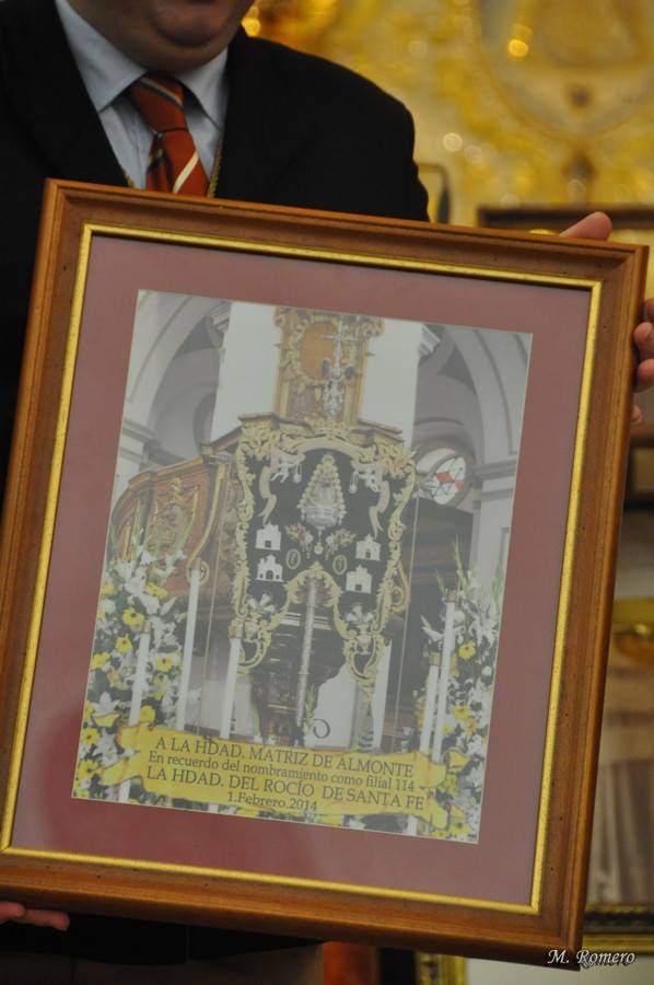 El Sábado 1 de febrero de 2014 se celebró la entrega de nombramientos como nuevas Hermandades Filiales, a las Hermandad del Rocío de Albaida del Aljarafe (Sevilla) y la Hermandad del Rocío de Santa Fe (Granada). La Hermandad Matriz quiere felicitar al Presidente, Junta de Gobierno y a todos los hermanos de las nuevas Hermandades Filiales, por este nombramiento al que se han hecho merecedoras. Pedimos a nuestra Madre, Ma Santísima del Rocío, que les ilumine y guíe en esta nueva etapa de su caminar como Hermandades del Rocío.