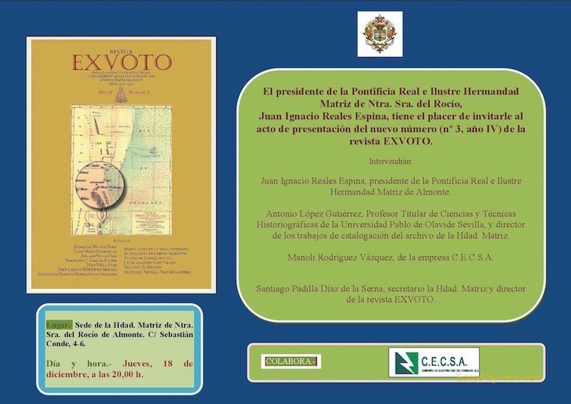 Acto de presentación del próximo número de la revista de investigación EXVOTO Nº 3 (Año IV), que hacemos este jueves 18, a las 20,00 h., en la sede de la Hdad. Matriz.