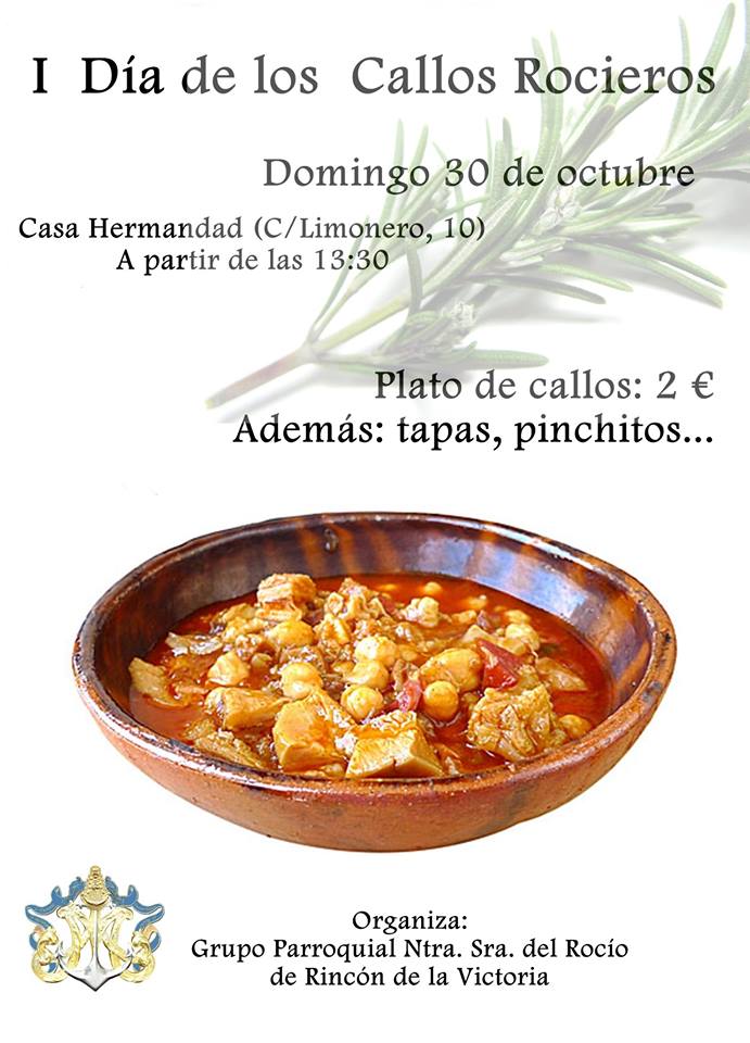 El próximo domingo 30 de octubre celebramos nuestro «I Día de los callos rocieros» en nuestra sede de Rincón de la Victoria. Un día de convivencia acompañado de unos deliciosos callos caseros, además de otros platos para pasar un fantástico día en la que no faltará la música y el buen ambiente.