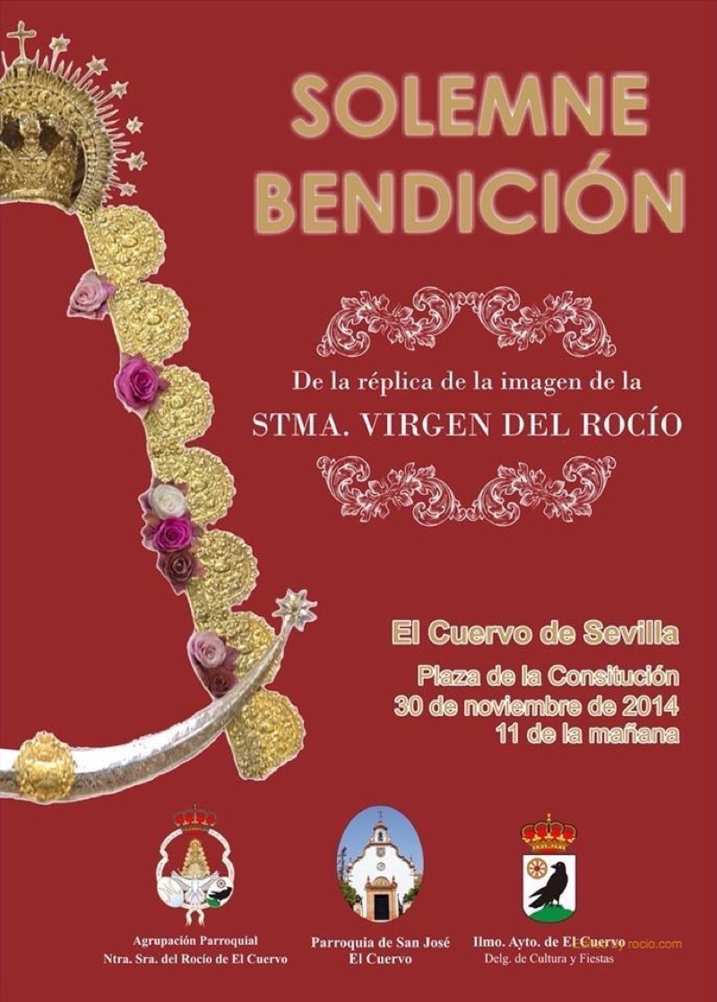 La Parroquia de San José, sede canónica de los Rocieros Cuerveños acogió el pasado sábado el acto de presentación del Cartel que anuncia que el próximo 30 de noviembre a las 11:00 de la mañana en la Plaza de la Constitución de la localidad se realizara la Solemne Bendición de la réplica de la imagen de la Santísima Virgen del Rocío, talla está realizada por el imaginero local Ismael Márquez, y que será amadrinada por la Stma. Virgen del Rosario Patrona y Alcaldesa Honorifica de El Cuervo, titular de la Hermandad y Cofradía del municipio.