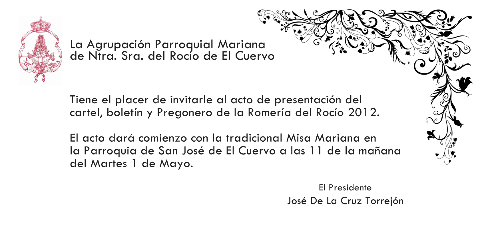 Agrupación de El Cuervo – Cartel, Boletín y Pregón. El próximo día 1 de mayo a las 11 de la mañana en la Parroquia de San José.
