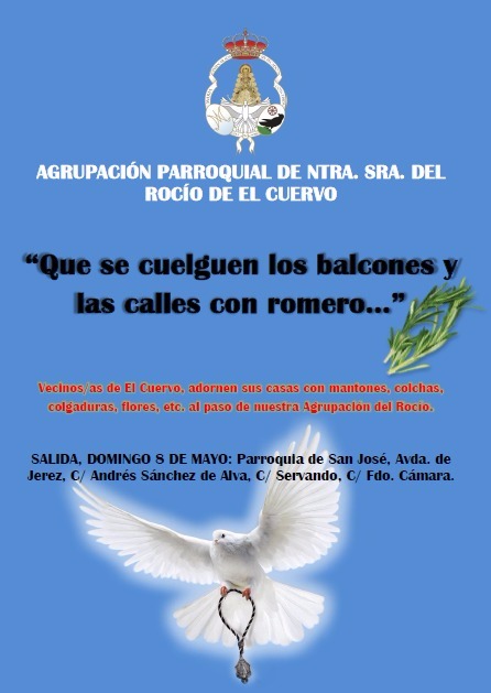 La Agrupación de El Cuervo anuncia su Salida hacia el Rocío 2016 el domingo 8 de mayo.