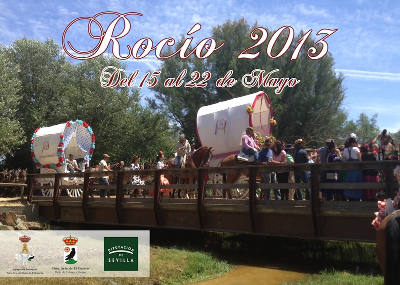 El Pasado sabado día 6 de Abril, la Parroquia de San José, sede Canonica de la Agrupacion Parroquial de Ntra. Sra. de El Rocio de El Cuervo acoguio la presentacion oficial del Cartel Anunciador de la Romeria del Rocio 2013, que una vez mas las Carretas de nuestro pueblo nos anuncian en el Cartel , que ya esta aquí un nuevo Rocío. Es una fotografía realizada por un hermano de esta Agrupación que se quiere mantener en el anonimato, al cual agradecemos la instantánea tomada el viernes de rocío del año pasado durante el paso de nuestra Agrupación por el puente del Ajoli, momento emblemático y entrañable para toda hermandad Rociera cuando pisa este puente, la vegetación verde de los pinos y el intenso azul del cielo de este día, enmarcan a la perfección este momento. Expresar nuestro agradecimiento en estos momentos tan difíciles para todos, que este año hallamos contado con la impresión de este cartel por parte de la Exma. Diputación de Sevilla y con la ayuda del Ilmo. Ayuntamiento de El Cuervo.