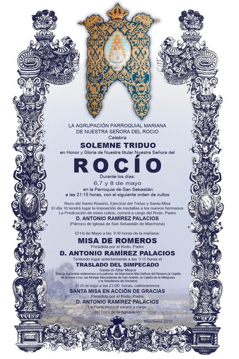 Agrupacion Parroquial Mariana de Ntra. Sra. del Rocío de Marchena – Solemne Triduo durante los días 6,7 y 8 de mayo en la Parroquia de San Sebastián