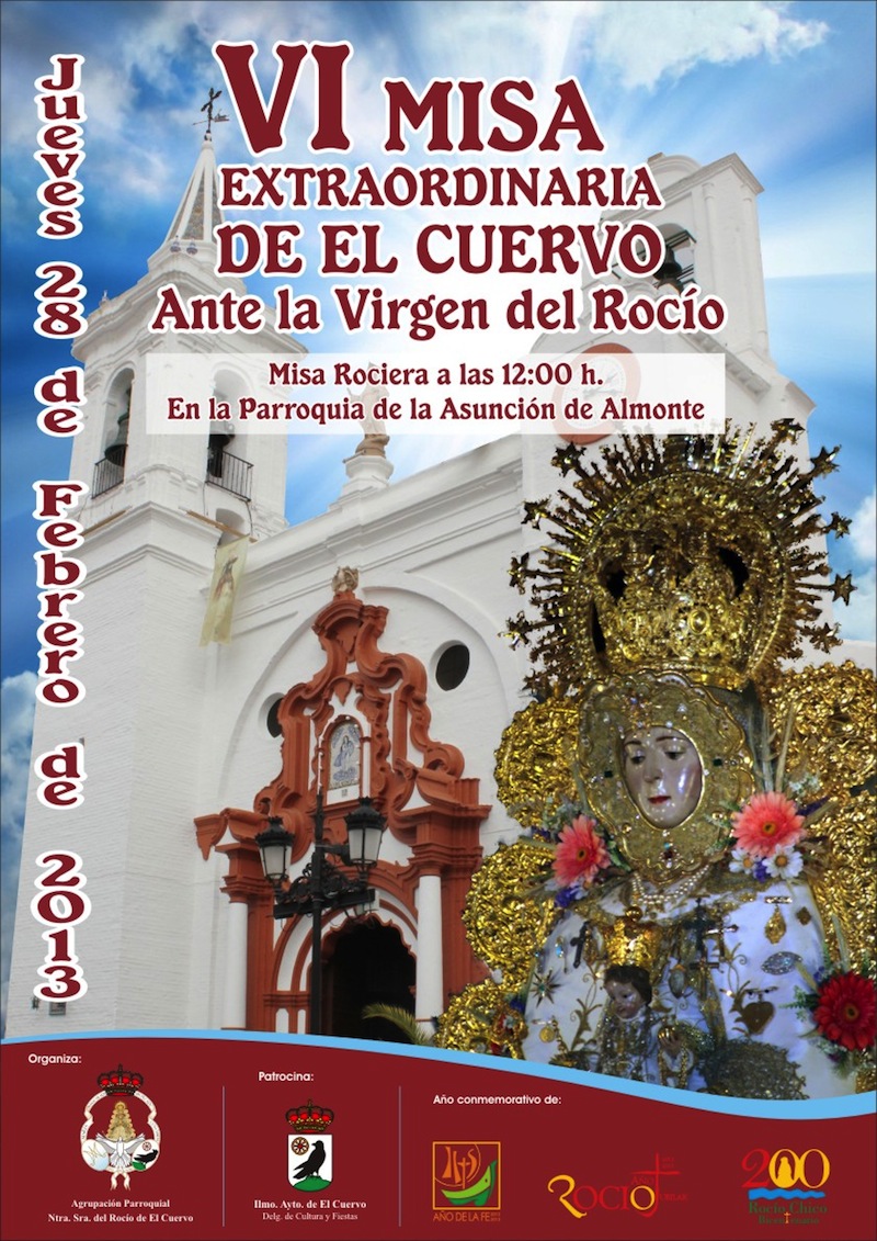Ya estamos preparando nuestra peregrinacion para este año, que como novedad celebraremos la misa en la Parroquia de la Asuncion de Almonte, coincidiendo con el Año Jubilar, el Bicentenario del Rocio Chico y el Año de la Fe, tres conmemoraciones importantes por la que no te puedes perder el acompañarnos el proximo 28 de Febrero en la Parroquia de la Asuncion de Almonte, a las 12:00 de la mañana junto con nuestra Hermandad Madrina Lebrija.