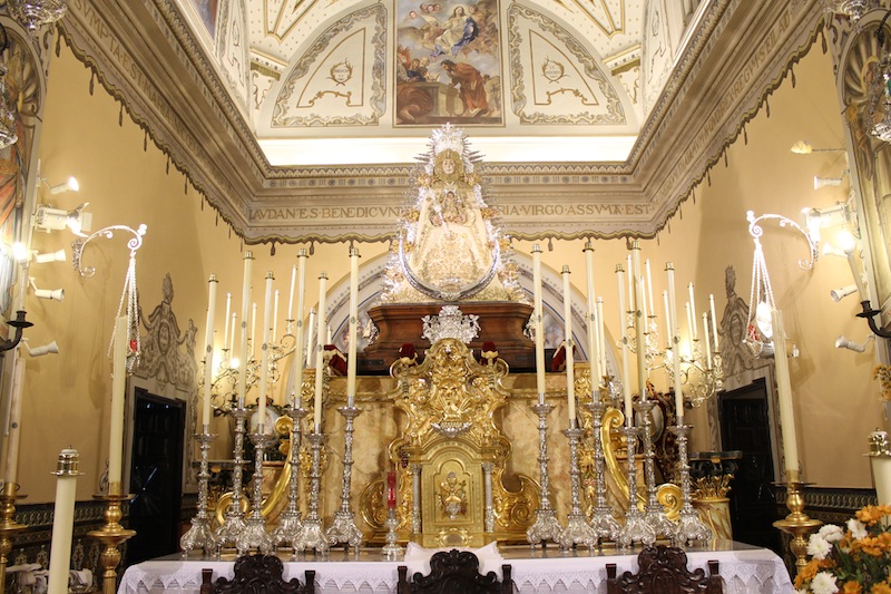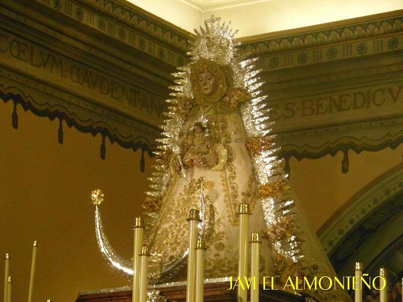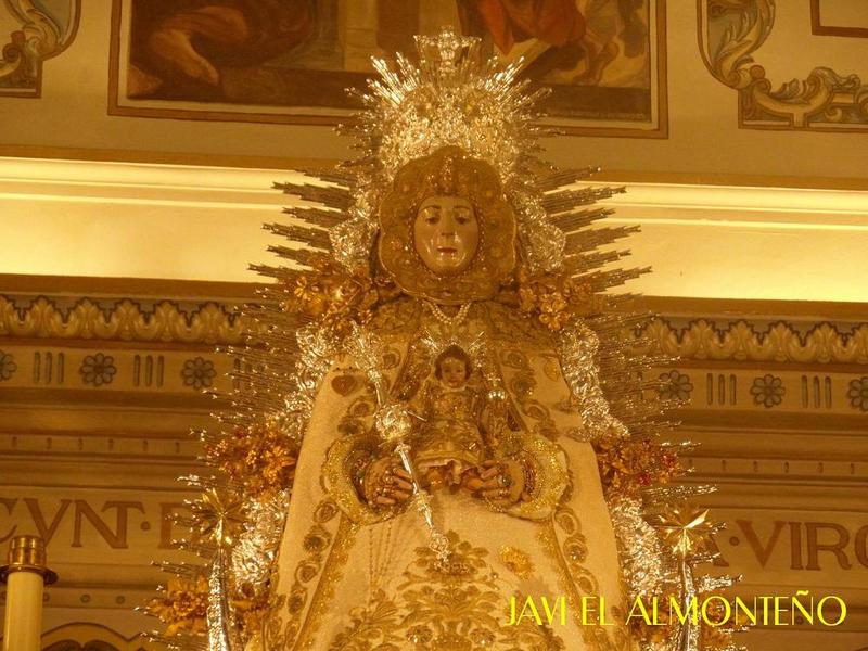 La Virgen ha sido entronizada en la peana de su paso antiguo, que data de 1933, sin palio, recuperando la antigua costumbre que imperaba cuando se encontraba en Almonte, hasta finales de los años treinta del pasado S. XX.