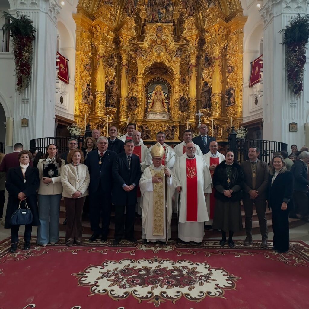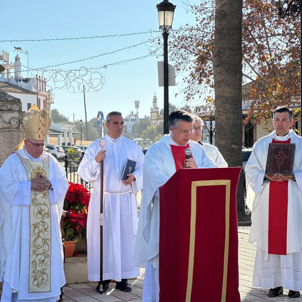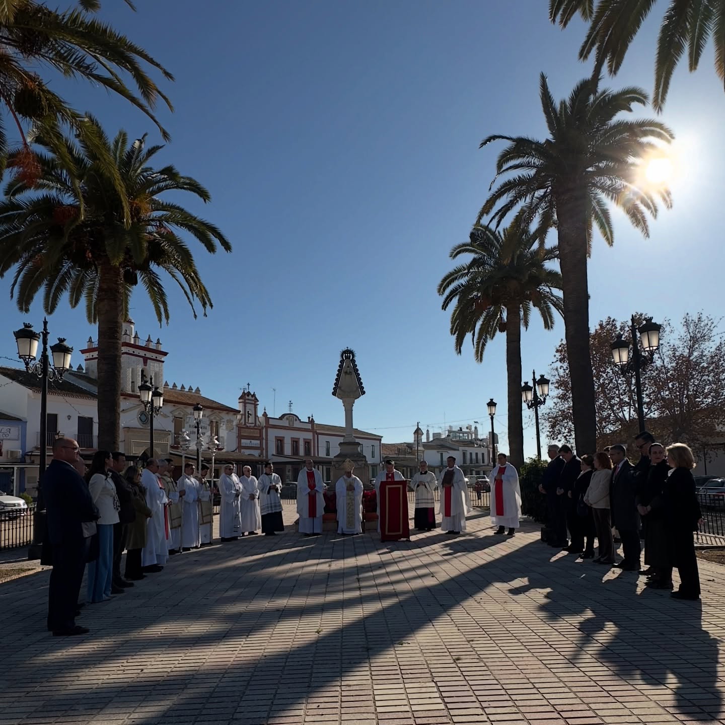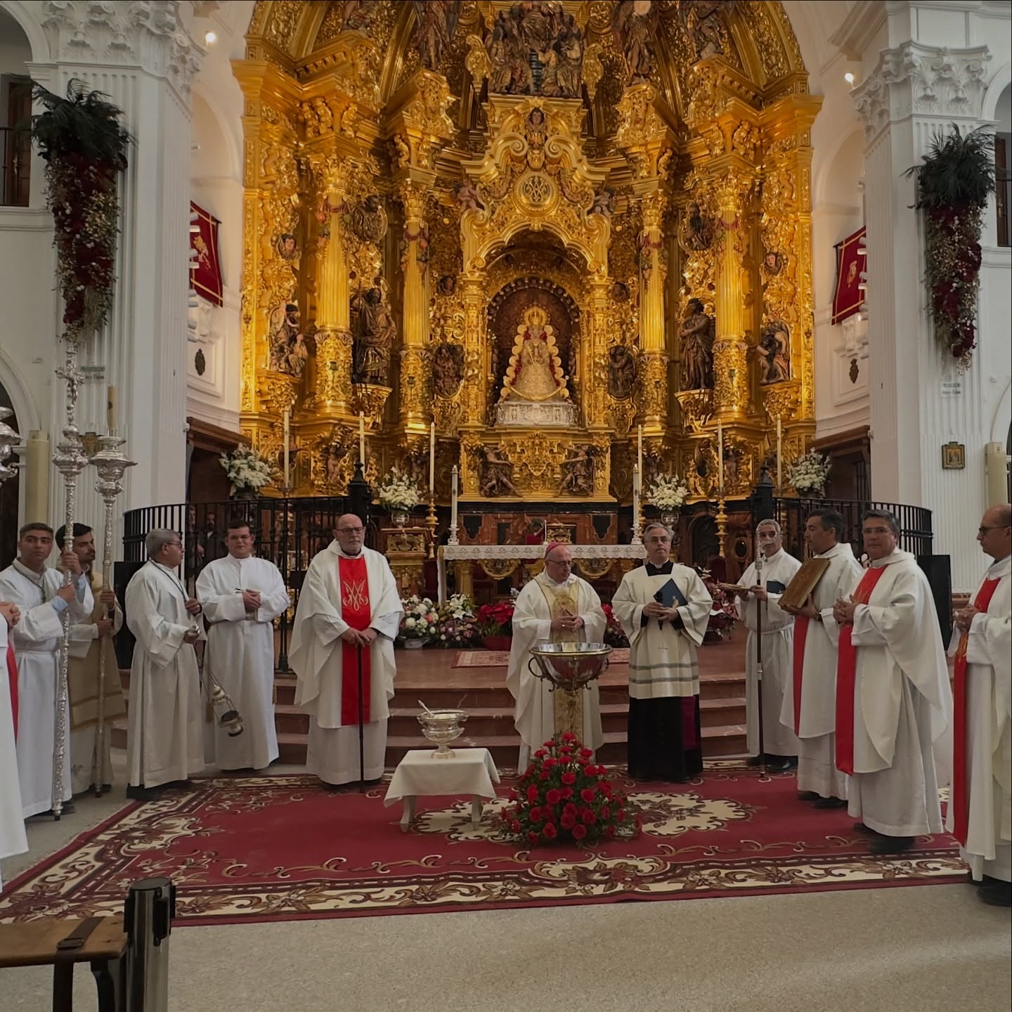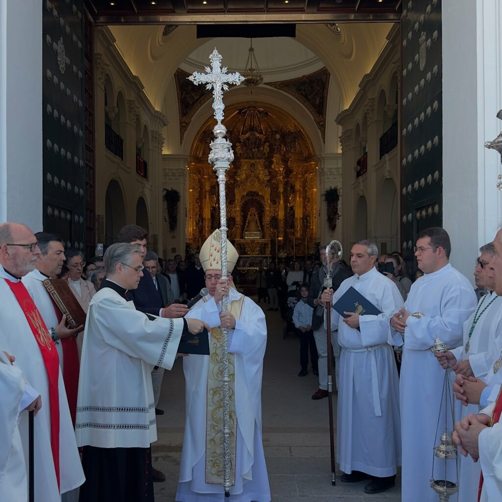 Esta mañana, en el día que celebramos la fiesta de Santa María, Madre de la Iglesia, hemos celebrado el rito de la apertura del Jubileo en el Santuario Nacional del Rocío, presidido por el Sr. Obispo de Huelva, Mns. Gómez Sierra. Acompañado por el Vicario General de la Diócesis, el Rector del Santuario, y otros sacerdotes concelebrantes y cantado por el coro de la Hermandad Matriz de Almonte.