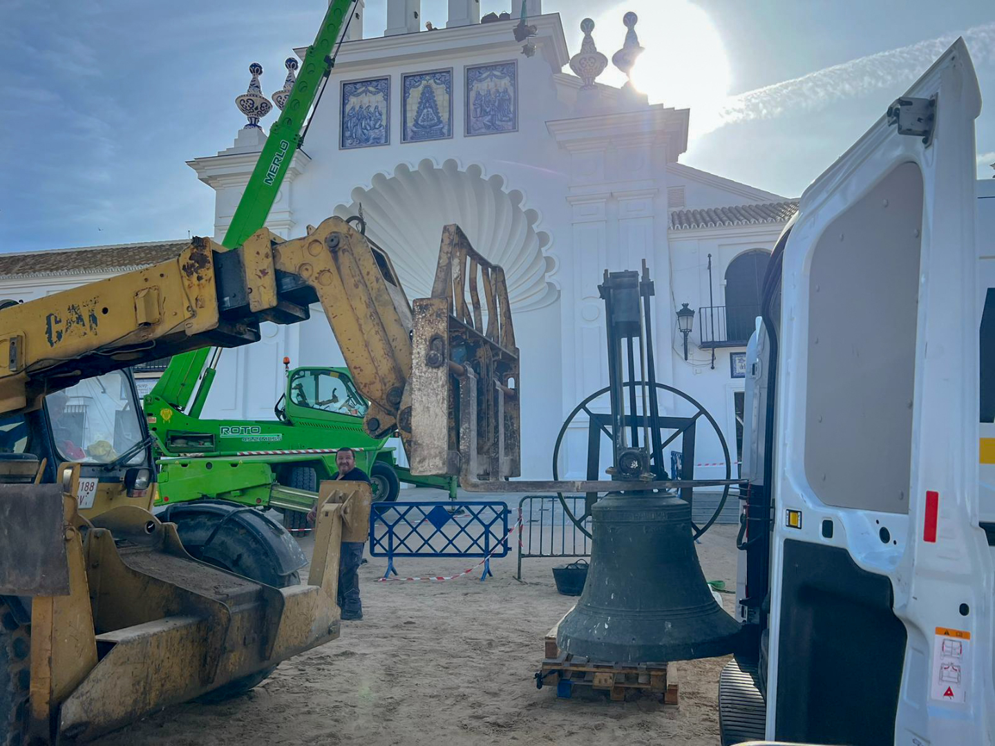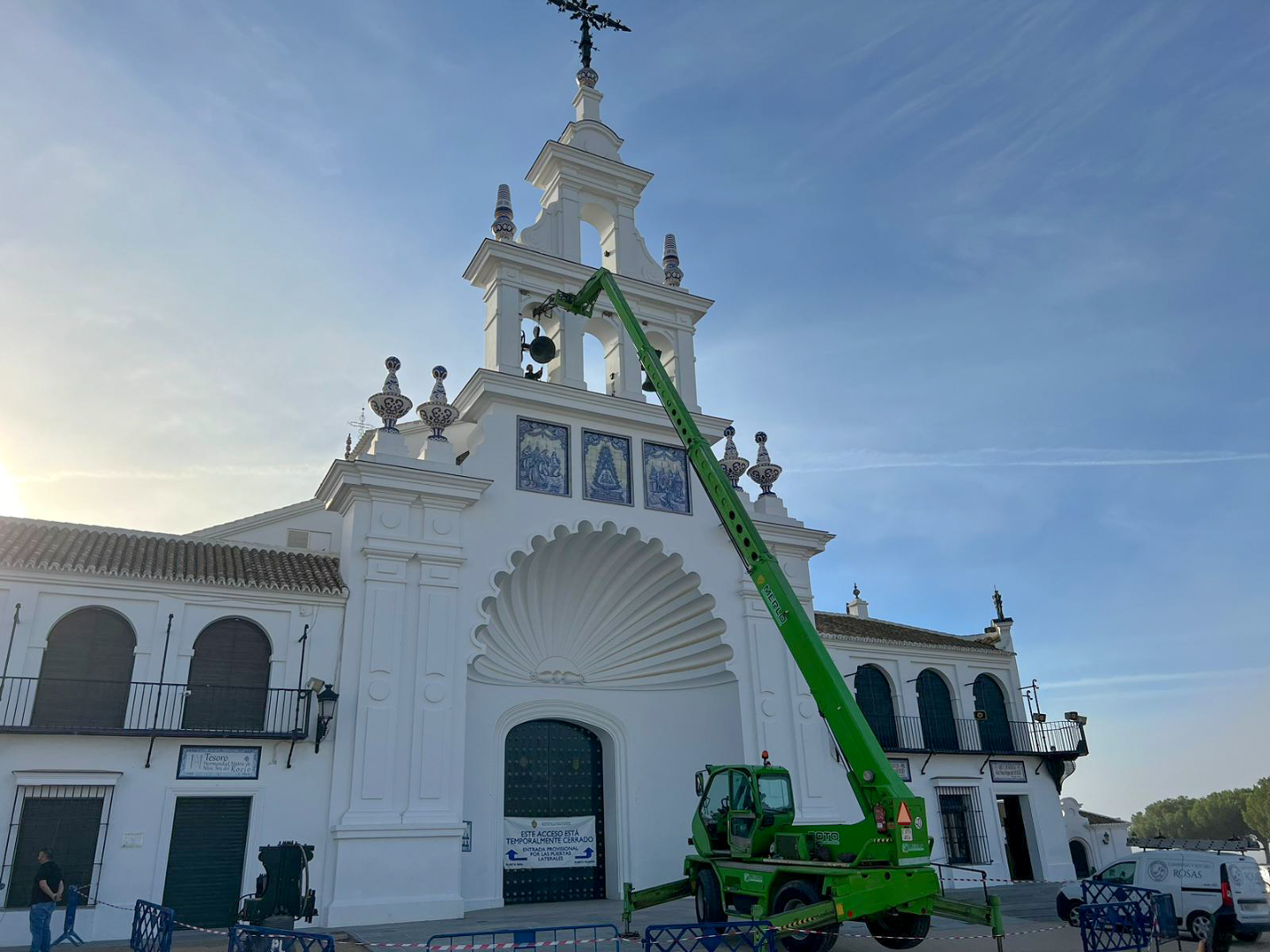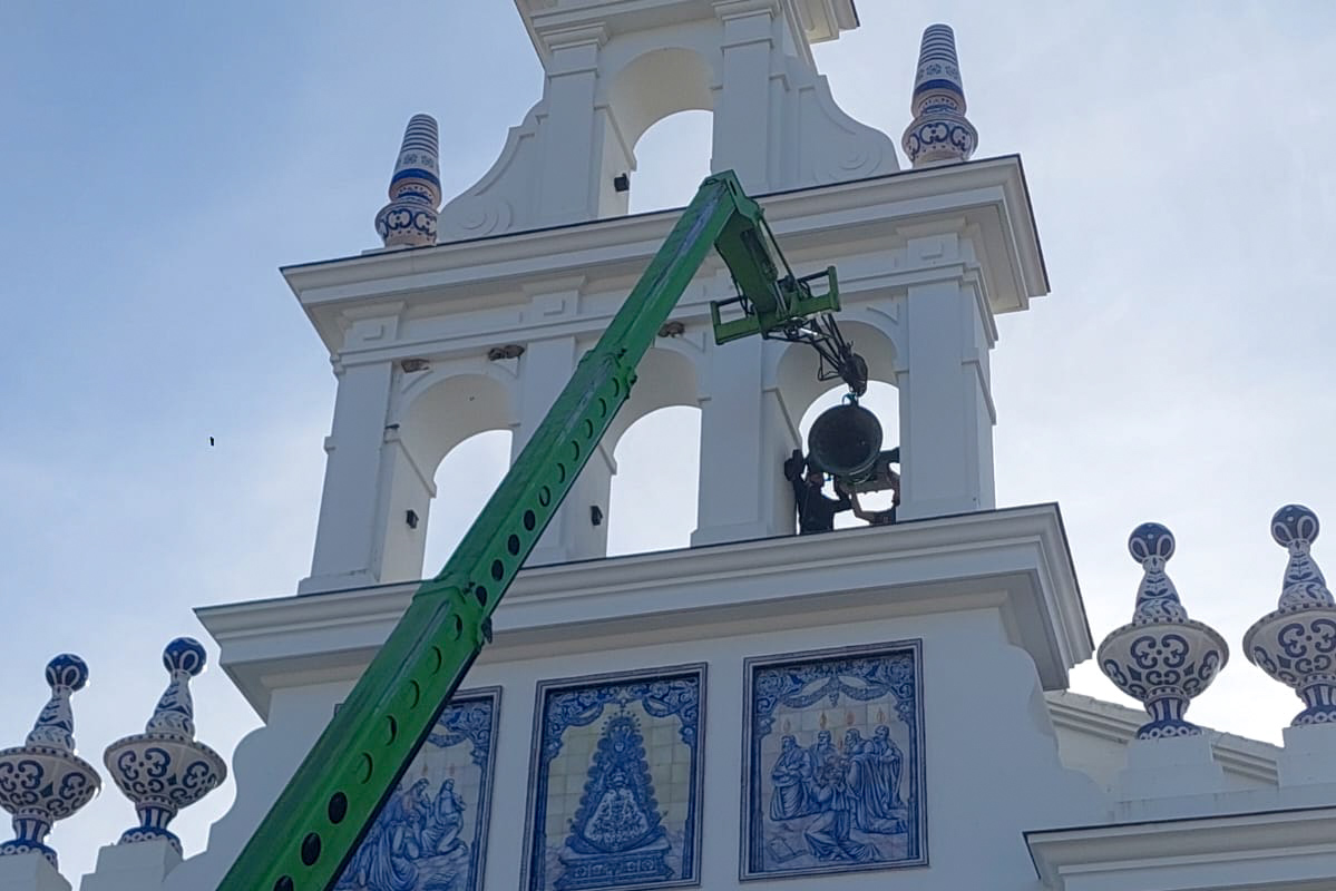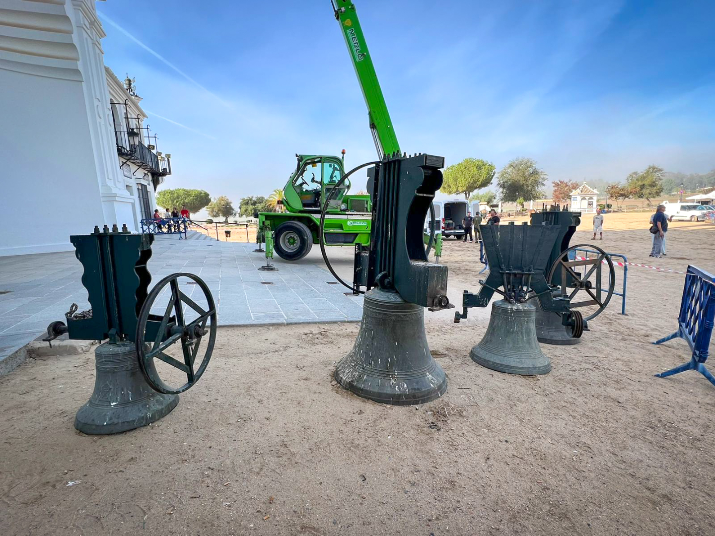 A primera hora de esta mañana las campanas del Santuario han sido cuidadosamente retiradas para someterse a unas tareas de mantenimiento y puesta a punto de cara al nuevo curso.